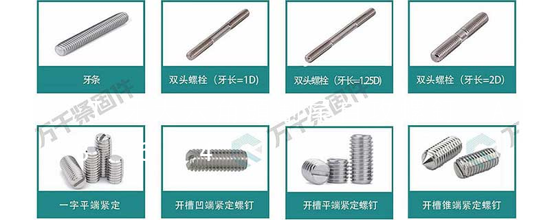 主要分類包括普通螺絲、機螺絲、自攻螺絲和膨脹螺絲三種。有頭螺釘Cap screw 過去限于全牙的扣件。六角頭螺釘Hex cap screw與大六角螺栓Hex bolt 顧名思義為頭部為六角型的外螺紋扣件,設計為使用扳手轉動。依照ASME B18.2.1標準,六角頭螺釘(Hex cap screw)較一般的大六角螺栓(Hex bolt)的頭高和